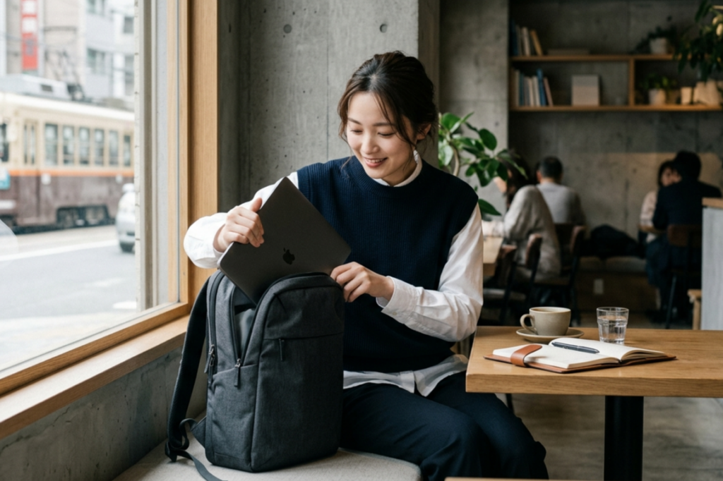 デザインはシンプルで飽きが来ず、黒やグレーなどの落ち着いたカラーは大人のファッションにも合わせやすいです。撥水加工や軽量素材、背面の安定感ある設計など、日々の「使いやすさ」と「快適さ」が追求されている点は他のバッグにはない魅力です。