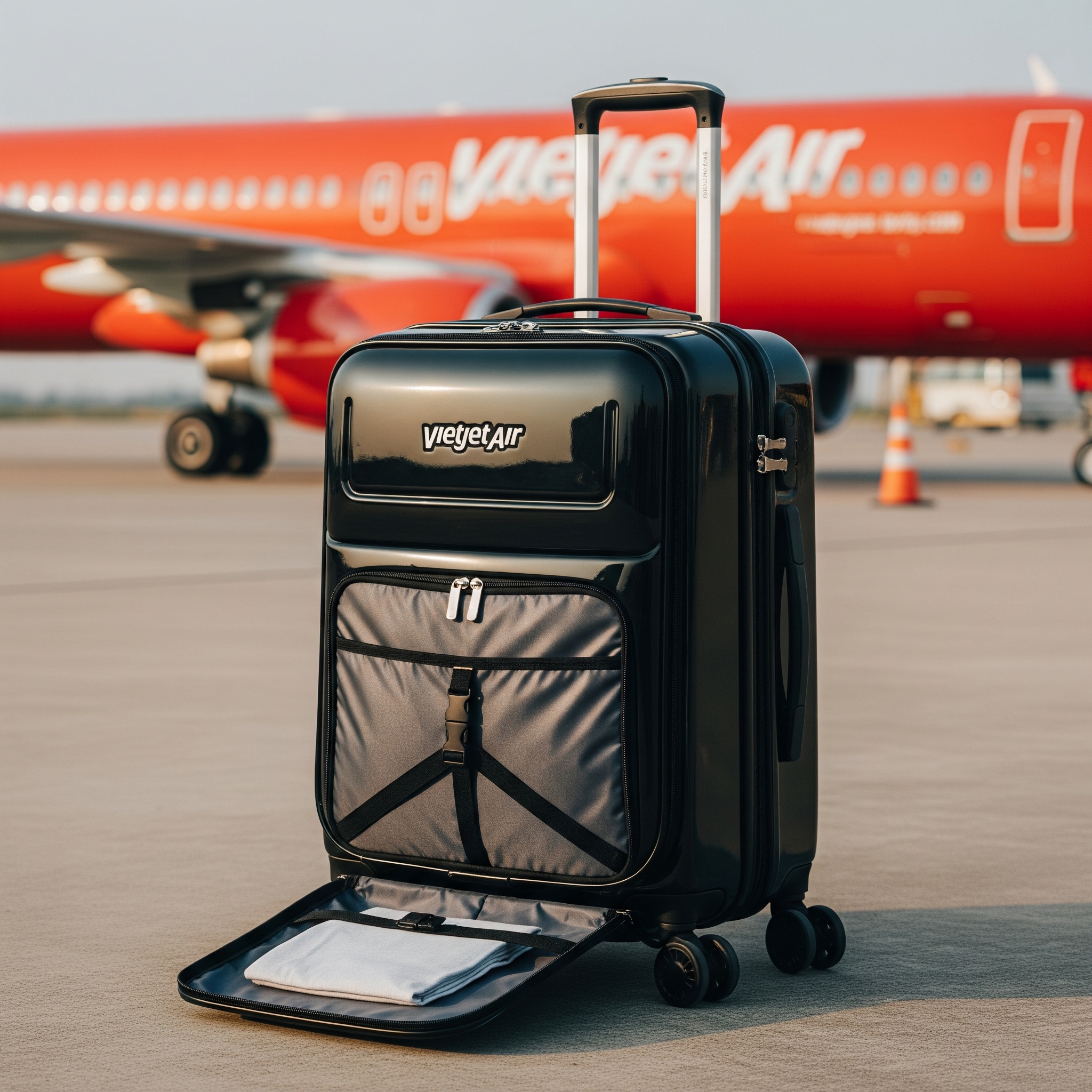 ベトジェットエアの規定サイズ(56cm x 36cm x 23cm)にぴったり合う「機内持ち込み専用」モデルを選ぶことが最重要です。購入時には必ず実測し、車輪やハンドル部分を含めた総外寸が規定内であることを確認しましょう。