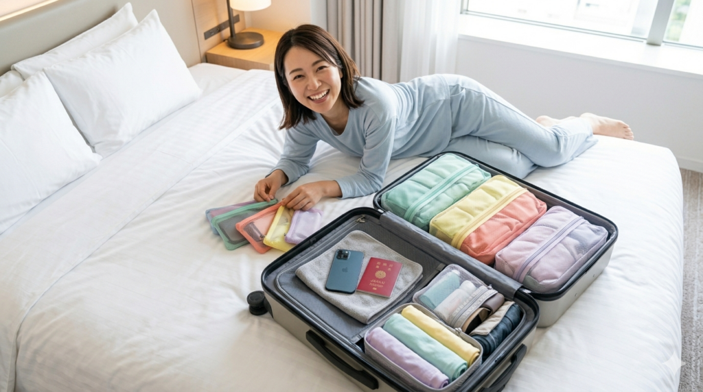 整理されたパッキングは、旅先での着替えや持ち物の出し入れがスマートになり、旅行の快適さをぐっと高めてくれます。