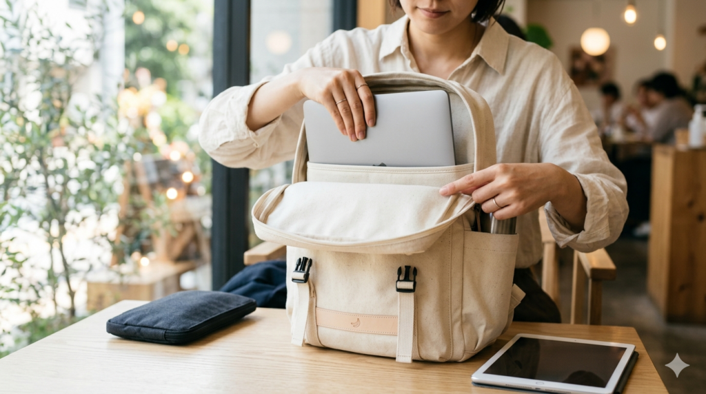 パソコンや財布も楽々収納!無印リュックの優れた収納力を検証